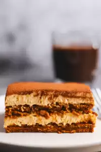 Layers of coffee-soaked biscuits, mascarpone cream, and Biscoff for a modern twist.