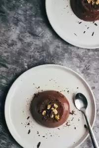 Silky, chocolate-hazelnut panna cotta that sets in the fridge.
